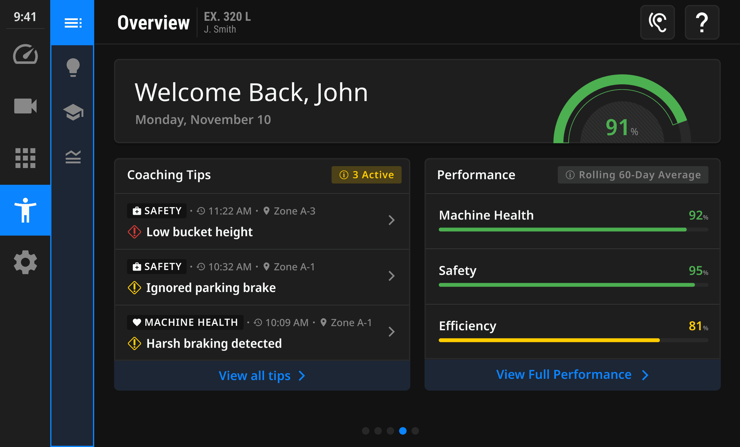 For operators who want more guidance, the Learning section offers short, focused videos tied directly to recent coaching tips. Content is personalized and easy to access without pulling operators away from their workflow.